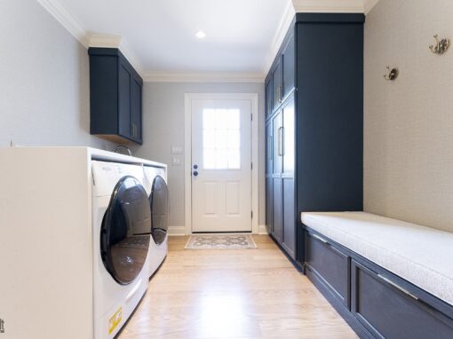 Our team designed a cohesive renovation plan featuring a stunning wood-accented entryway with crisp white wainscoting and a spacious, light-filled kitchen. Custom cabinetry, a large center island, and updated lighting fixtures brought sophistication and convenience together. Premium finishes, including natural wood floors and sleek hardware, unified the home’s style from entry to kitchen.